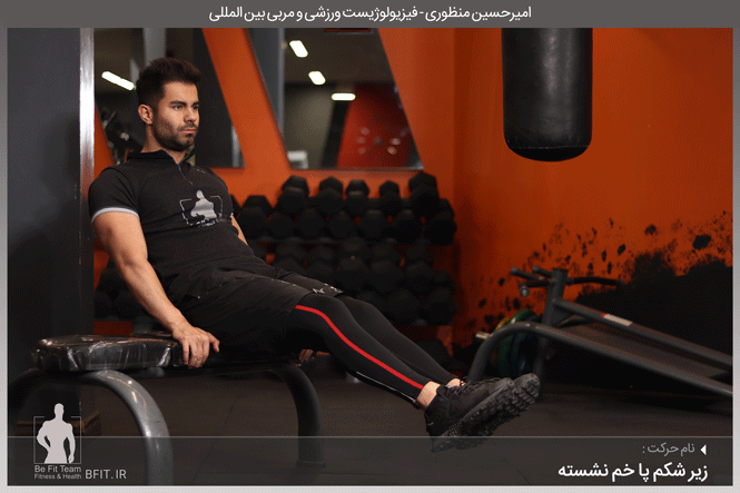 پاها را از ناحیه مفصل لگن بالا آورده ، ران ها را به طرف سینه بالا بیاورید . زانوها کمی خمیده باشند .